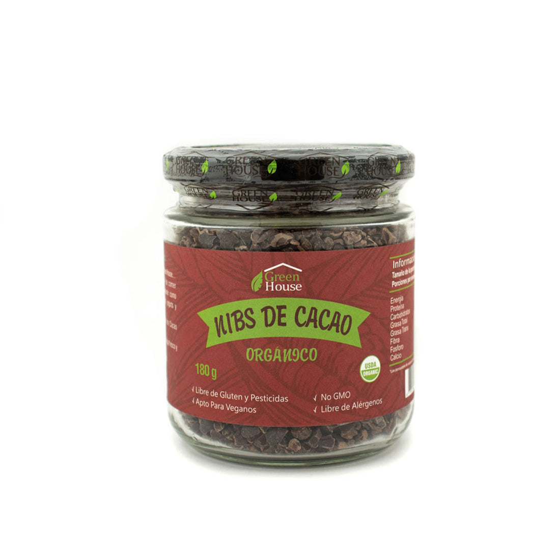 NIBS DE CACAO FRASCO VIDRIO GREEN HOUSE